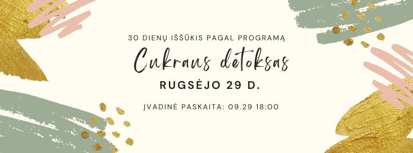 Lietuvos sveikuolių sąjunga, rugsėjo 29 d, paskelbė cukraus detokso iššūkį, prie kurio dar galima prisijungti. Beveik 40 tūkst. sekėjų sukaupusioje „Facebook“ grupėje „30 dienų iššūkis“ dalyviai mėnesį nevalgys beveik nieko, kas yra saldu.